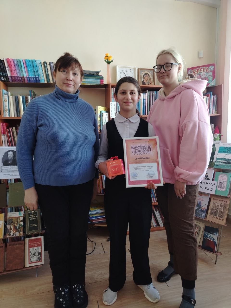 В декабре - январе прошла Всероссийская акция Минкультуры России и ООО "Яндекс" "Культурный марафон 2025: классическая литература глазами детей" в рамках культурно-образовательного проекта "Культура для школьников". В ней участвовала воспитанница художественного кружка старшей группы "Своими руками" МБУ "КДЦ "Завидово" с. Завидово Куницкая Виктория с наставниками библиотекарем Студеновой Ириной Николаевной и руководителем художественного кружка Шудневой Анжеликой Александровной. Общая творческая работа помогла им победить в акции с рисунком для обложки книги Жюля Верна «Дети капитана Гранта» . Победительница получила сертификат и подарки. Поздравляем с победой и желаем дальнейших творческих успехов!!!